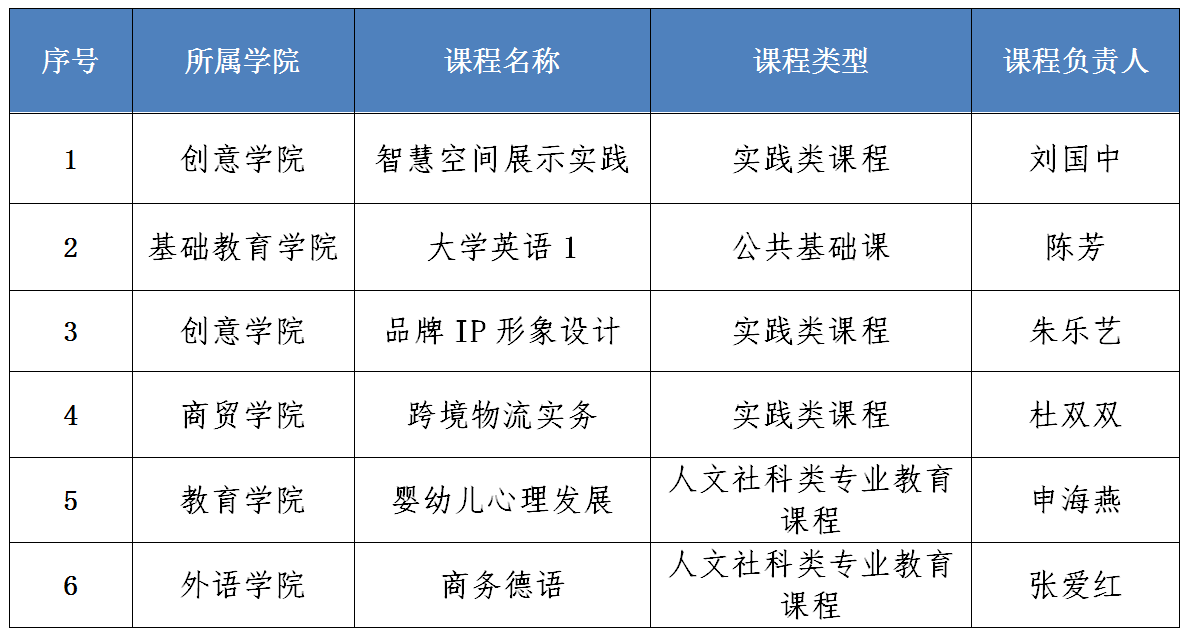 2023年度校级课程思政示范课程入选名单(排名不分先后)