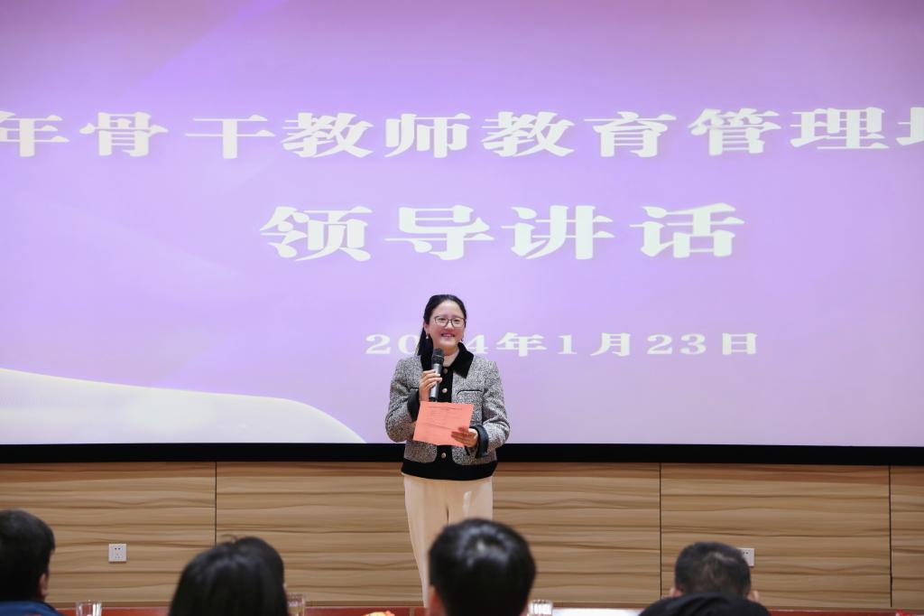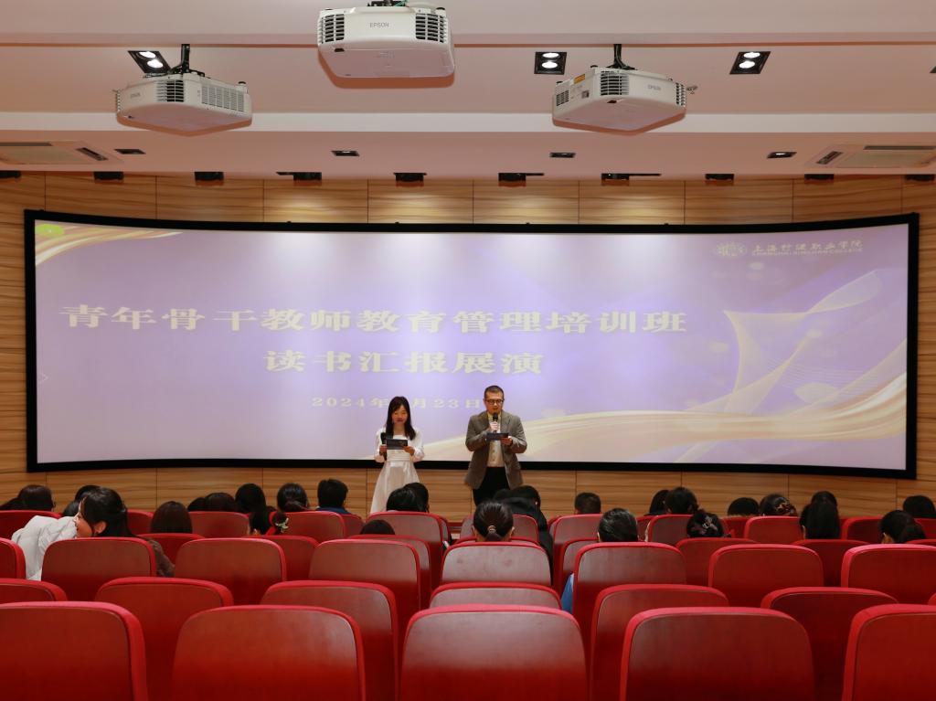 阅读点亮心灵,书香沁润人生。1月23日,学校青年骨干教师教育管理培训班举行了一场集思想、艺术和教育于一体的读书汇报展演活动,青年教师在舞台上以丰富多样的方式演绎了文本的魅力。学校党委书记沈燕华、校长黄群、党委副书记李越、副校长顾斌出席活动,骨干班支部书记曹娜、班主任张蕾、各基层支部书记及骨干班全体学员参加。