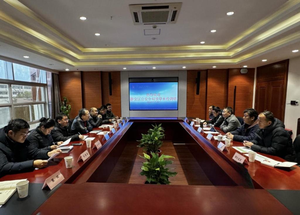 2月28日,市公安局静安分局副局长吴春晖、支队长孙波、副支队长范夏松,彭浦镇派出所副所长陈璟琦等一行9人,来我校调研校园安全工作,学校党委副书记李越、副校长顾斌、后保处处长锁明、学工部部长孙波、后保处保卫干事董国勋、专职辅导员穆拉迪里•木合塔尔等参与会议座谈。