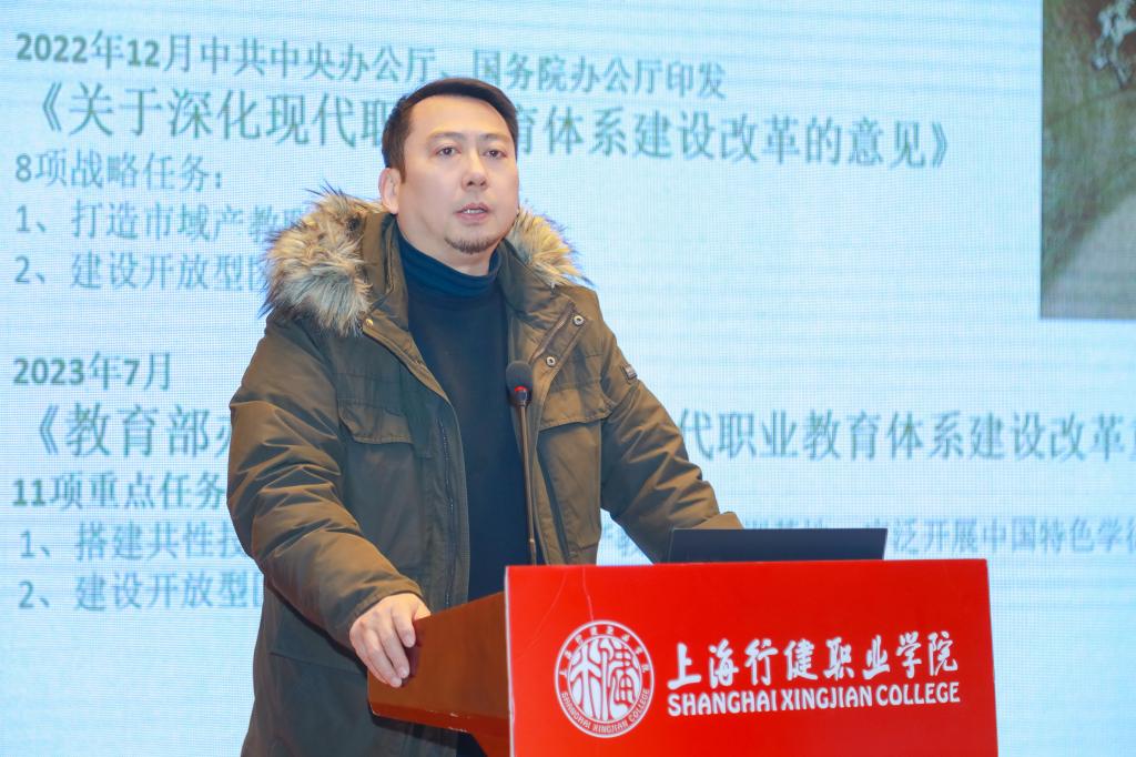 随后,教务处处长公晨从产教融合推进、技能竞赛保障、数字化转型发展和教学常规落实四个方面部署新学期教育教学重点工作。她指出扎实推进教育教学工作,要把握好稳和进、立和破的关系,坚持稳中求进、以进促稳、先立后破、不立不破,不断夯实根基。按照既定部署推动各项工作落地见效,以立促破,从“新”出发。