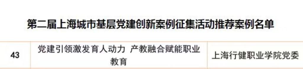 2月28日,第二届上海城市基层党建创新案例征集评选结果正式揭晓,该活动于2023年七月启动,区级、街镇、高校、其他四个领域共报送申报案例680余个,经过半年多的征集、初评、复评、调研等工作,评选出最佳案例30个、优秀案例40个、入围案例50个。其中高校系统仅7个,由学校党委报送的案例《党建引领激发育人动力 产教融合赋能职业教育》成功入围。