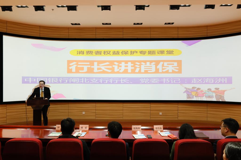 春暖花开,一年一度的“3.15消费者权益保护日”如期而至。为了进一步加强学生的金融安全意识,提高他们对金融诈骗的防范能力,财务处联合后勤保卫处,特别邀请了中国银行闸北支行,于3月14日举办了一场主题为“维权意识进校园,诚信金融共担当”的金融安全讲座。我校校长黄群、副校长顾斌,中国银行闸北支行行长、党委书记赵海洲出席本次讲座。