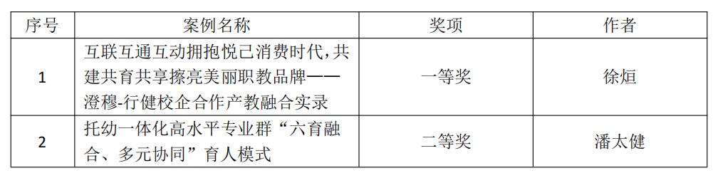 近日,由上海市教育委员会教育技术装备中心、上海市发展改革研究院、上海市职业教育产教融合促进会举办的产教融合校企合作案例征集活动结果出炉,数字商贸学院案例《互联互通互动拥抱悦己消费时代共建共育共享擦亮美丽职教品牌----澄穆行健校企合作产教融合实录》荣获一等奖;儿童教育学院案例《托幼一体化高水平专业群“六育融合、多元协同”育人模式》荣获二等奖,学校获评“优秀组织奖”。