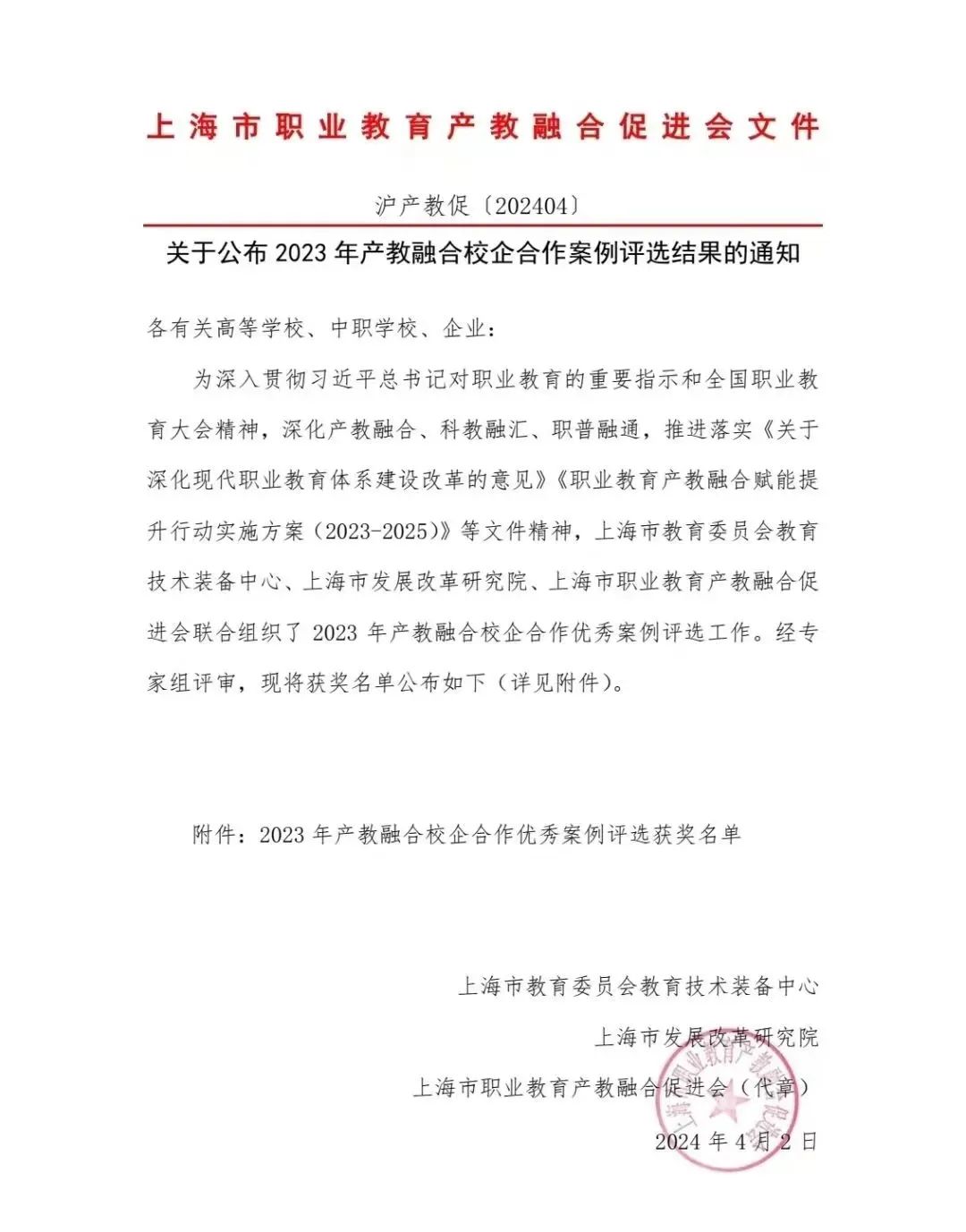 喜报!我校在2023年产教融合校企合作优秀案例评选中获佳绩