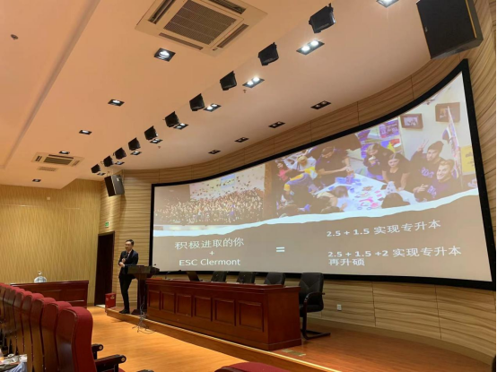 近日,外语外贸学院联合数字商贸学院与合作院校法国克莱蒙高等商学院开展留学与升学专题宣讲会以及后续推进会。外语外贸学院院长曾恬、外语学院党支部书记杨晓霞、数字商贸学院升学与就业指导老师杜双双、法国克莱蒙高等商学院中国地区招生总负责人严威、外语外贸学院负责教师及辅导员出席本次宣讲会,2021级、2022级学生积极参与。