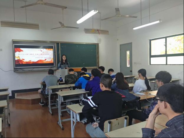 最后,信机系团总支书记庄淑珺指出:十九大报告对青年提出了殷切希望,作为青年学子,共青团员更应响应祖国的召唤,紧跟新时代的步伐,开启新征程,我们不仅要有民族感、时代感、使命感,更要立足当下,放眼未来,积极拓展自己,为祖国的建设添砖加瓦。