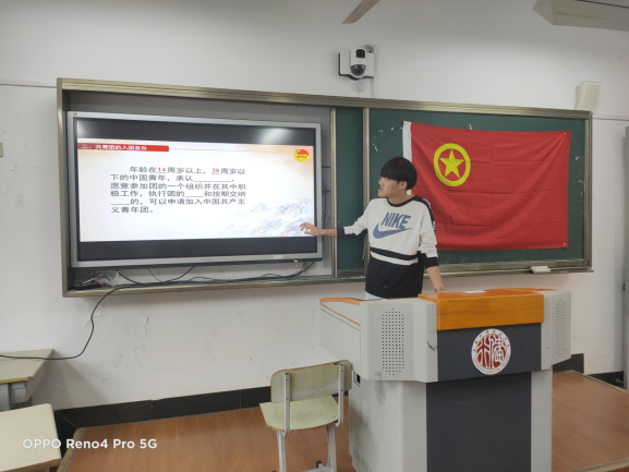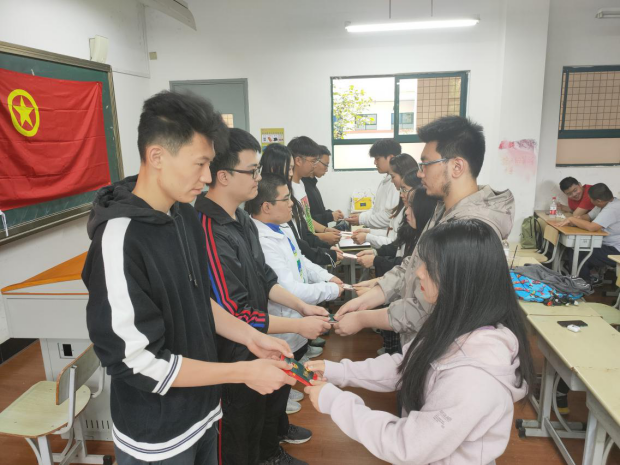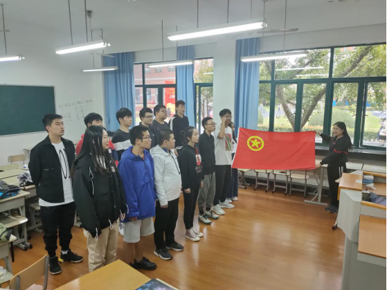 会上,信机系团总支副书记王镇宇带领大家进一步认识共青团,包括共青团历史,团员的权利和义务,希望每一位同学都能以团员的标准严格要求自己,积极践行,做一名合格优秀的共青团员。随后,信机系各班团支书授予12位新团员团员证以及《中国共产主义青年团章程》,并且为新团员佩戴团徽。新团员面对鲜艳的团旗,将握拳的右手高举过肩,以最宏亮的声音进行庄严宣誓。每一句都是青春的誓言、每一句都高昂雄浑,表达了各位新团员对加入共青团的无限向往和为团组织增光添彩的豪迈激情!