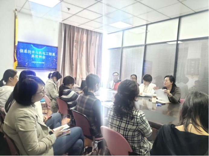 随后,王莹主任指出:为了办好公平有质量、类型特色突出的职业教育,提质培优、增值赋能、以质图强,加快推进职业教育现代化,更好地支撑我国经济社会持续健康发展,教育部等九部门特制定《职业教育提质培优行动计划》(2020——2023年);此外,中共中央、国务院印发了《深化新时代教育评价改革总体方案》。会上,王莹主任带领信机系全体教师就以上两个文件的总体要求、重点任务、组织实施这三个方面内容进行学习。