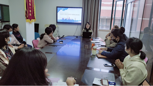随后,软件技术专业组长东苗老师介绍了她前往北京红亚华宇科技有限公司上海分公司进行企业实践的情况。从今年7月份开始,在为期三个月的企业实践中,东苗老师完成了入职培训、python培训、数据可视化课程配套资源开发、数据挖掘与大数据分析实训中心项目实施、大数据实训平台《Tableau数据可视化》、《基于电影评分的推荐系统》课程资源调整与更新。她从三个方面分享了自己企业实践的成果,包括:第一、撰写论文《基于知识图谱的多目标学习资源推荐算法》,已被《计算机系统应用》科技核心期刊录用,将于2021年上半年见刊;第二、与企业导师合作撰写论文《基于层次聚类和矩阵分解的协同过滤推荐算法》,已被《电子技术与软件工程》期刊录用,并于2020年11月见刊;第三、在红亚的大数据与人工智能实训平台上进行了系统学习。在红亚指导教师的帮助下,录制完成了六个微课单元,内容包括SQL Server数据库规范化设计、SQL Server中触发器的使用等。