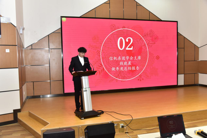 大会在所有团学会成员合唱共青团团歌中拉开序幕,各部部长对部门工作进行总结性发言。随后,信机系学生会主席钱晓晨对2020年度信机系团学会工作进行总结汇报,包括:一、一年以来信机系团学会队伍改革情况。二、信机系团组织在学生思想政治教育中的重要作用。三、依托第二课堂,开展丰富多彩的校园文化活动。四、践业于行,创新志愿者服务。五、利用新媒体,抓好政治引领的内容供给。六、团学会未来工作发展规划。过去的一年里,信机系取得的这些成绩,离不开老师们的悉心指导,更离不开同学们的共同努力。在未来,信机系团学会将继续努力,坚持解放思想,实事求是,与时俱进,走出一条富有信机系特色的团学工作之路。
