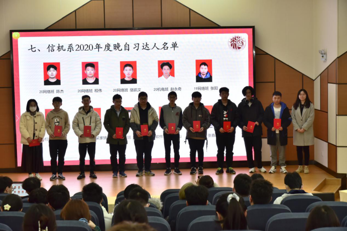 随后,大会对信机系2020年度优秀团学会干事、2020年度信机系机房晚自习达人进行表彰,同学们手中的这份荣誉是对他们辛劳付出的认可和勉励,也承载着更多的期许。紧接着,优秀干事代表朱静怡发言,她讲述了加入信机系团学会文艺部的点滴,表示信机系团学会为我们提供发展的舞台的同时也为我们带来了考验,我们只有不断学习、改正、锻炼自己,才能让学生会更好的发展下去。