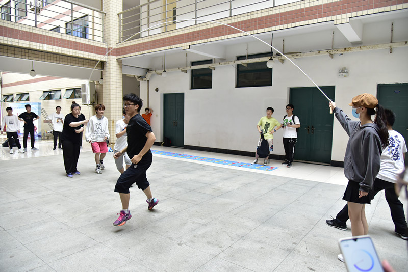 此次活动不仅设有传统体育运动项目,包括投壶、滚铁圈、跳长绳、踢毽子等,同时也设置了团队趣味体育运动,包括呼啦圈过山车、手脚并用等项目。活动共有六支队伍,每个队伍10人,同学们在对抗赛中挑战自我,团队协作,各组配合默契,享受着比赛的快乐。活动中,滚铁环的同学把铁环驯服得得心应手;踢毽子的同学们全神贯注地盯着翻飞的毽子,抬脚接毽,落脚无误,游刃有余,引来阵阵喝彩;最精彩的是跳长绳,大家齐心协力,绳舞飞扬,深切体会到团结合作的重要性。