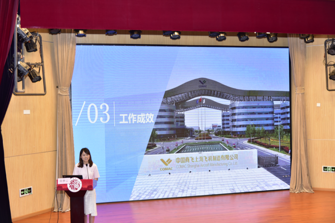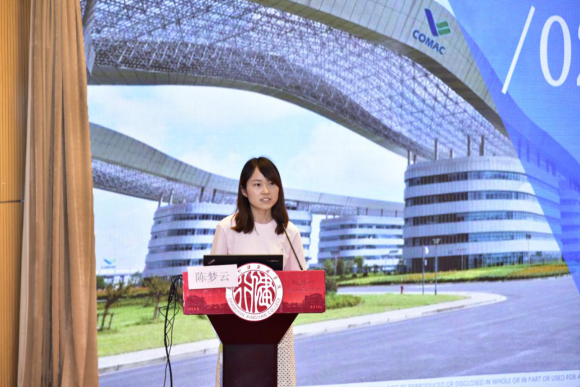 会上,沈燕华书记首先为大会致辞,她对陈梦云的到来表示热烈的欢迎,她介绍道:2012年9月,陈梦云从学院毕业后加入上飞公司,从事复材零件制造7年,她高质量完成了C919平尾复合材料零件的铺贴和制袋工作。她心思缜密、独运匠心,攻克大型壁板胶接难点,建立制袋标准规范,独创手铺三要素操作法。从陈梦云身上,可以看到工匠精神的完美诠释,精益求精、执着敬业、敢于创新,她七年如一日地追求着职业技能的极致化,靠着传承和钻研,凭着专注和坚守,缔造了一个又一个奇迹。沈燕华书记号召在座青年学子以陈梦云为榜样,追寻陈梦云学姐的成长足迹,以她为榜样,不忘初心,践行工匠精神,努力奋斗,成就梦想。