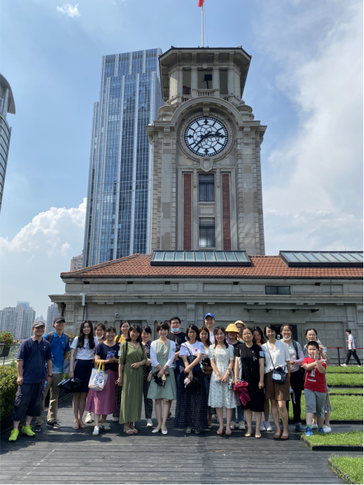 随后,大家到了上海历史博物馆的顶楼,顶楼是一片空旷的花园楼阁,一览无遗可见的上海最具有标记性的大厦高楼。紧接着,大家边听讲解,边打卡人民公园、大光明电影院、国际饭店、体育大厦、金门大酒店、五卅惨案纪念馆等具有代表性的地标建筑,进一步直观感受上海的发展变迁。