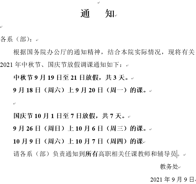 【来源:2021年中秋节、国庆节放假调课通知 | 发布日期:2021-09-09】