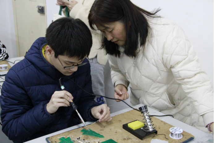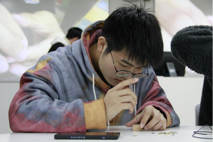 经过前期的宣传报名,11月29日至12月4日,信机系科技周活动顺利举行。此次活动包括朋克机器人吊坠制作、彩色圣诞树焊接以及扑翼机竞时赛,活动伊始,主持人向参赛同学们介绍了中国木雕艺术大师——郑春辉以及大国工匠卢仁峰的故事。郑春辉是2019年“大国工匠年度人物”,同年12月入选了2020年“中国非遗年度人物”候选名单,他创作的《清明上河图》木雕更是创下了世界吉尼斯世界纪录。卢仁峰在因事故失去左手后,仍没有放弃焊接工作,他泡在车间,刻苦练习。五年后,卢仁峰恢复了过去的焊接水平,再次成为厂里焊接技术领军人,为我国坦克的焊接保驾护航。同学们为大国工匠身上的故事而感动,他们身上不向困难屈服、迎难而上的精神更是值得所有同学学习。在朋克机器人吊坠制作活动中,同学们通过设计、钻孔、打磨、组装等,设计出独一无二的吊坠。彩色圣诞树焊接和扑翼机竞时赛更是贴合专业,帮助学生进一步拓展专业知识,两项活动各决出一等奖1名、二等奖2名、三等奖3名。