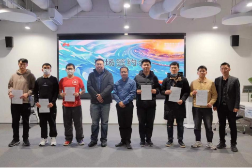 双选会现场,张昊聪、黄吉祥、沈天祺、彭灵虎四位同学直接与企业签约入职。(信机系)