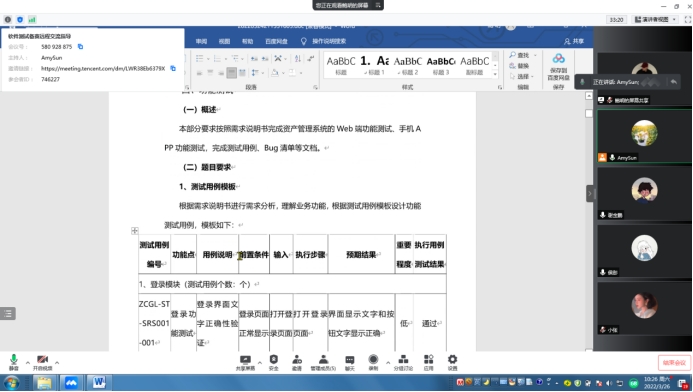 紧接着,信机系软件专业孙富菊老师分享了线上授课、备赛的主要情况。孙老师除了担任软件专业三门线上课程的教学,还承担了两个赛项的线上辅导工作,包括软件测试赛项和网站设计与开发赛项,“停赛不停训”,线上备赛,信机系参赛师生们及时调整思路,充分挖掘校企合作企业资源,运用视频教学、网络直播、微信群等方式,结合企业项目平台开展线上备赛,确保备赛、战“疫”两不误。除了每周1-2次的线上集中训练,每周带赛老师都会组织学生进行复盘,不断精进比赛技能,为后续的市赛、国赛打下坚实的基础。