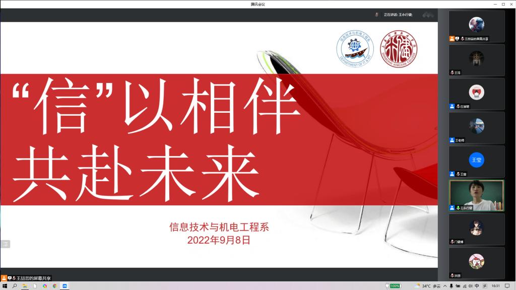 【来源:“信”以相伴 共赴未来——信机系组织开展2022级新生入学教育活动 | 发布日期:2022-09-14】为了让2022级新生对大学生活有更好的认识和规划,9月8日下午,信机系于腾讯会议组织开展“信”以相伴 共赴未来新生入学线上教育活动,信机系主任王莹、信机系党支部书记王永以及信机系2022级四位新生辅导员,2022级全体学生参加了宣讲会。此次宣讲会是为了帮助2022级新生全面了解专业培养目标和未来的就业方向,帮助学生充分了解所学专业,激发学生的专业学习兴趣,增强学习的自觉性。