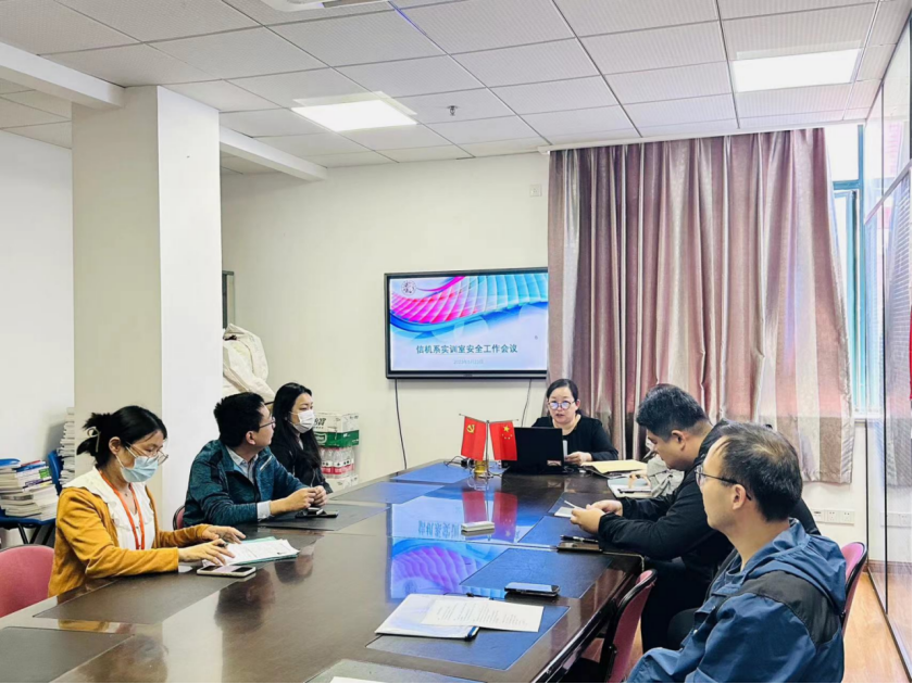 【来源:信机系组织召开实训室安全管理工作会议 | 发布日期:2023-05-24】为全面规范信机系实训室安全管理工作,5月23日,信机系在明德楼1410会议室召开信机系实训室安全管理工作会议,部署实训室安全相关工作。会议由信机系主任王莹主持,信机系党支部书记王永、实训室主管石佳伟、教学事务秘书柏婷以及网络、飞机、机电和汽车专业的专任教师和实训教师参加此次会议。