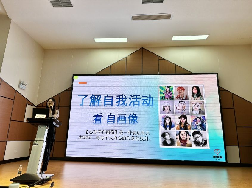 接着,黄老师运用“自画像揭秘”、“我是谁”的心理互动游戏来帮助同学们了解自己的情绪和需求,进行自我认知和调整。