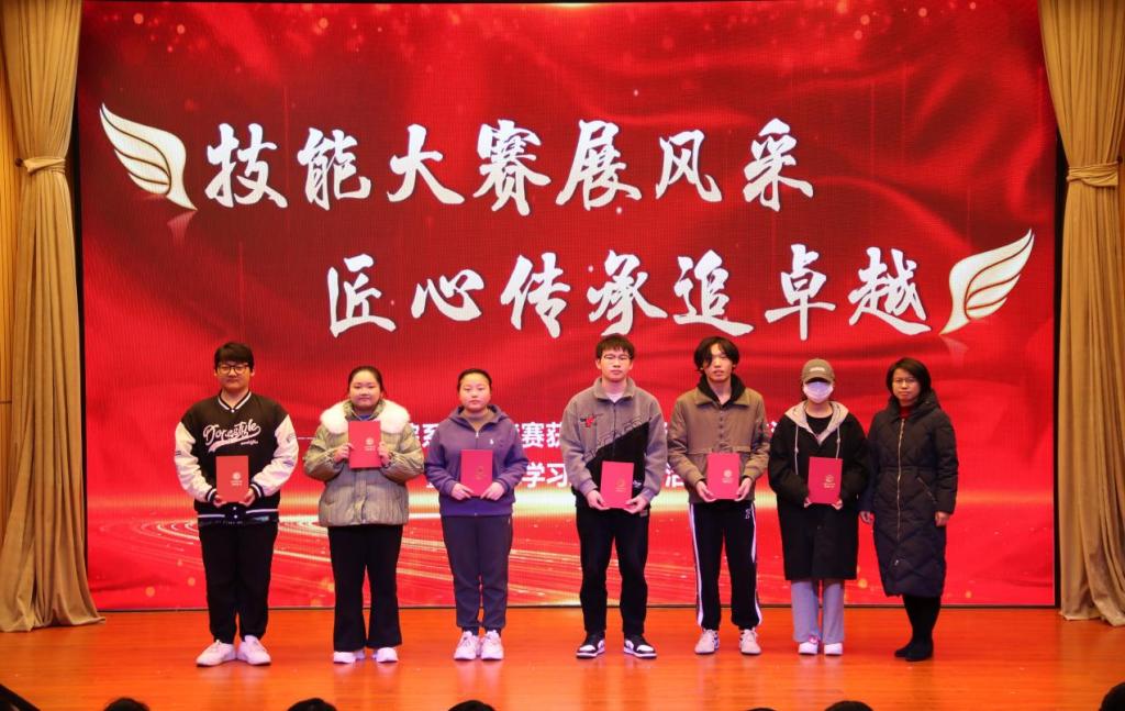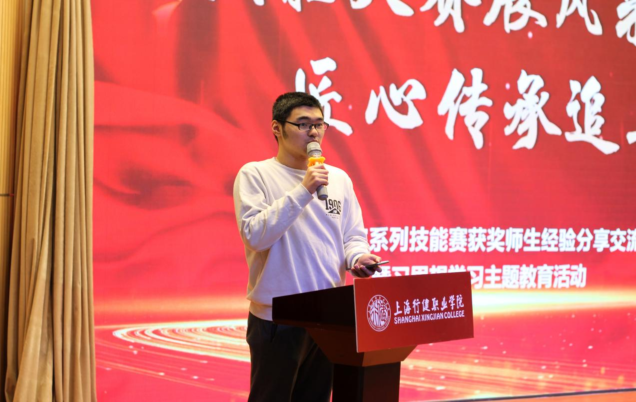 会上,沈博、侯竣浩、宗嗣华作为获奖学生代表先后上台发言,感叹成绩和荣誉来之不易,是在学校领导和老师的共同关心和帮助下,经过比赛团队每一个师生攻坚克难,坚持不懈的努力下取得的。他们分享了参赛经验,呼吁更多的同学们积极参与到技能竞赛中,以坚如磐石的信心、只争朝夕的劲头、坚忍不拔的毅力,创新进取,争取更好的成绩。