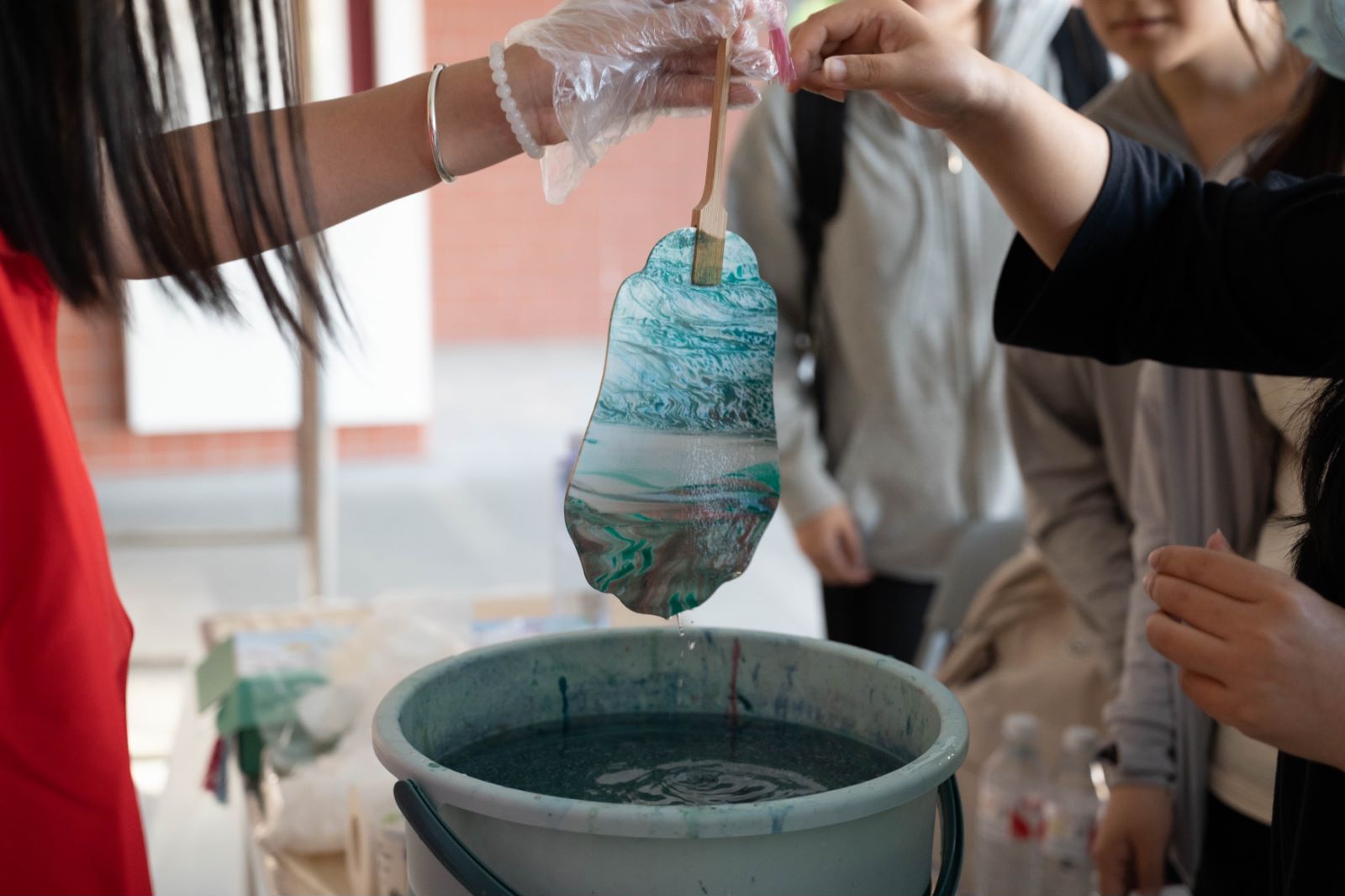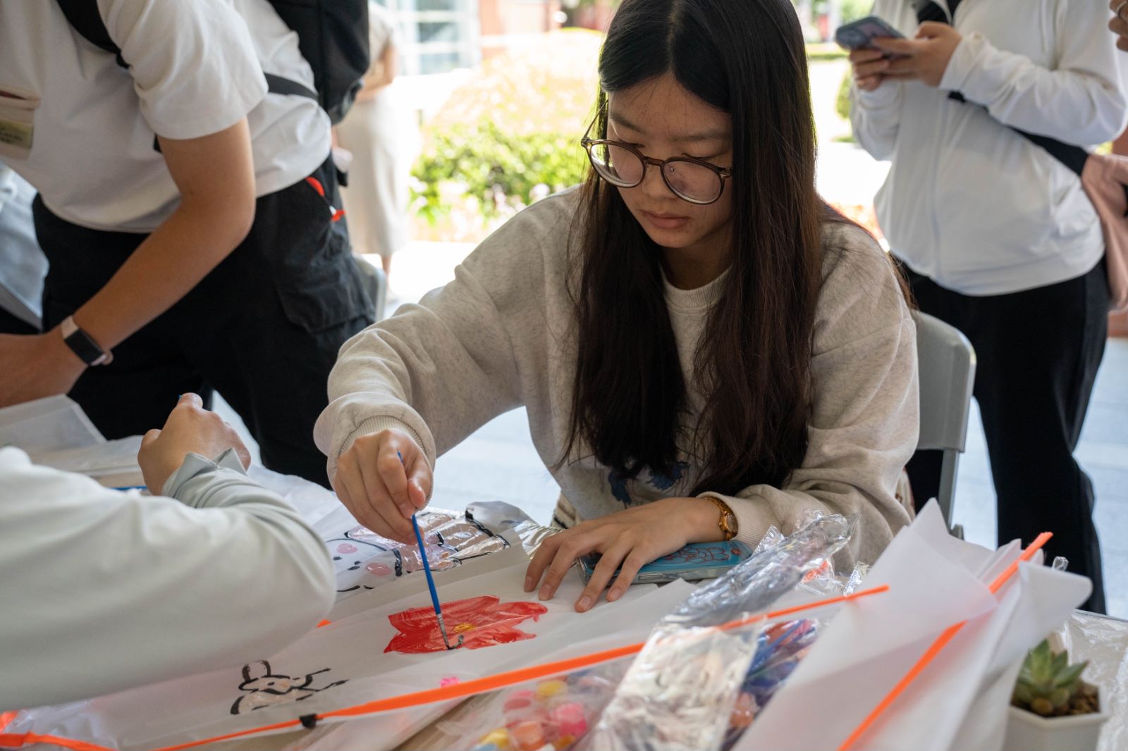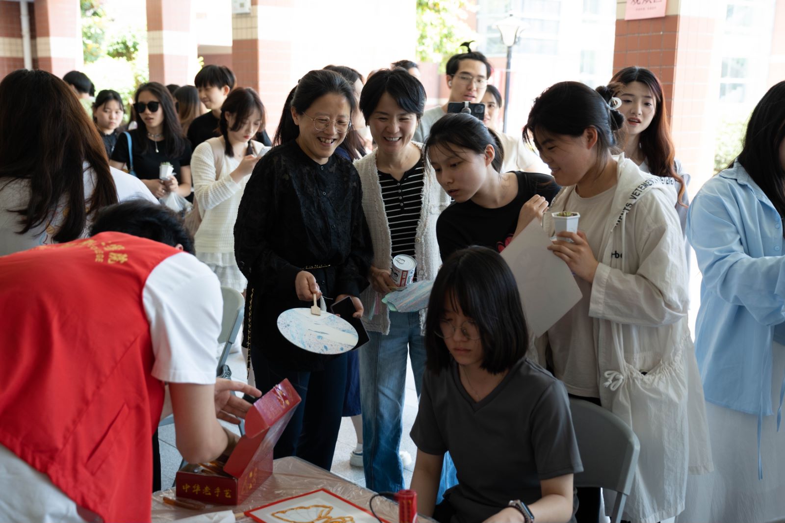 这场劳动美的盛会包括了漆扇制作、对弈、篆刻、糖画制作、编手绳、拓染、剪纸、风筝制作、活字印刷、书法十项中华优秀传统技艺。其中,漆扇制作是师生最喜爱的项目,师生共同参与漆扇制作,通过手工制作工艺品体验劳动美。活动中,学生充分挖掘个人兴趣爱好,开启创意的大门,激发学生创造力。