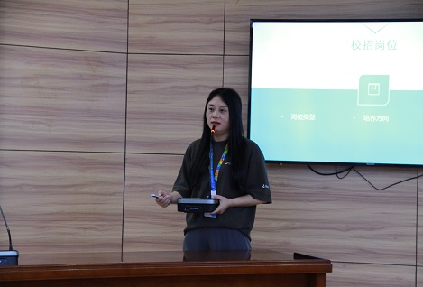 宣讲会上,聚水潭应用支持部经理金露静以精美的宣传PPT开头,让同学们对公司办公环境、企业文化、休闲娱乐及独特的花名文化等方面有了初步了解。着重介绍了公司的招聘岗位,就岗位需求展开了深入细致的讲解。她首先强调了每个岗位的核心职责和所需技能,让同学们对即将踏入的职场有了更加清晰的认知。并且围绕公司运营项目、运营模式以及公司福利待遇等多方面进行宣讲,让同学们对企业发展、招聘岗位有了更进一步的认识。除此之外,萱草老师提及古代有“滴水穿石”的典故,而今则有“聚水潭”的概念,它象征着无数水滴的汇聚,凝结成潭水,这代表着团队力量的凝聚。这不仅体现了聚水潭创始者对全体成员团结协作的殷切期望,也寄托了对在座学子的深切厚望。随后,聚水潭售后团队的业务负责人陈佳红以轻松愉快的话题引导学生们进入答疑环节。
