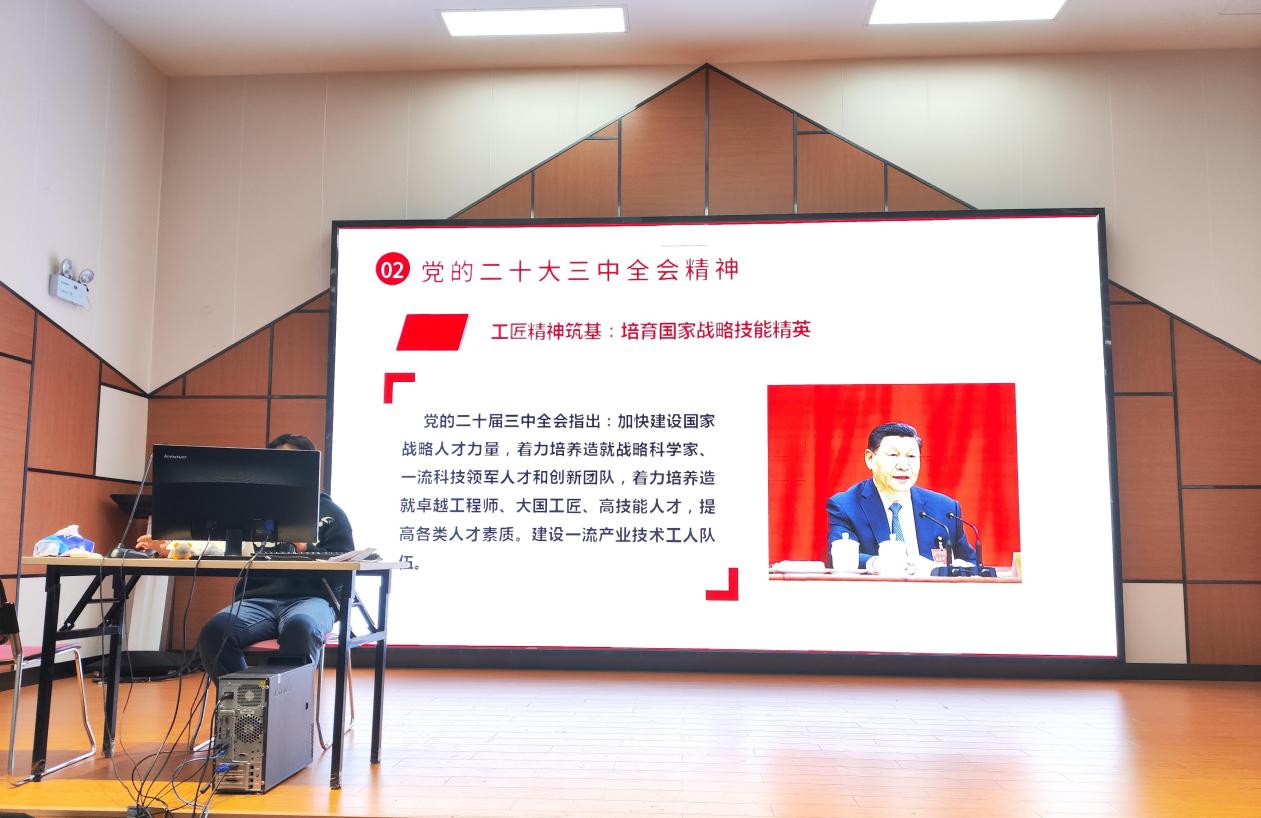 会议伊始,信息学院团学会主席郭传磊同学带领团干深入学习党的二十大三中全会精神。向同学们传递了习近平总书记对广大青年的殷切寄语,要秉持匠心,守正创新,逐梦前行。