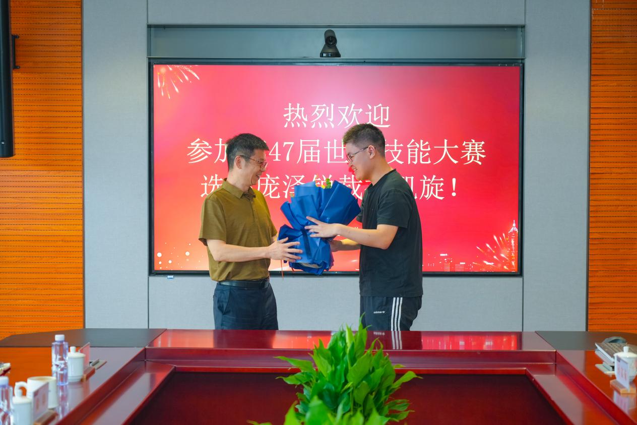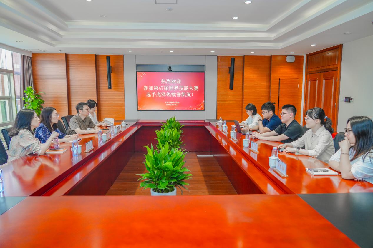 2024年9月26日,学校热烈欢迎在第47届世界技能大赛中荣获佳绩的选手庞泽锐载誉归来。星空电竞app下载安装苹果版校长黄群、副校长章卫芳,上海信息技术学校副校长张艳梅、教练吴迎祥以及信息学院党支部书记王永和老师们出席本次会议。