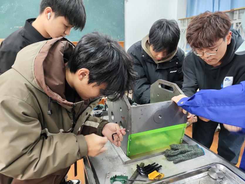 汽车实操活动组织24汽车专业学生对汽车教具进行拆装,进一步了解轮系结构、间歇机构的组成、传动原理等,将课堂中所学的理论知识灵活应用于实践,让同学们在操作中不断提升技能水平。