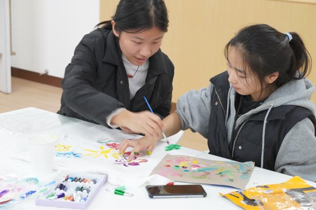 该活动旨在为同学们构建创意实践的舞台,借团队合作促进默契,激发创新灵感。同学们两两搭档,手持颜料画笔在洁白T恤上尽情创作。画笔之下,俏皮卡通、神秘抽象图案,彰显青春与创新活力。
