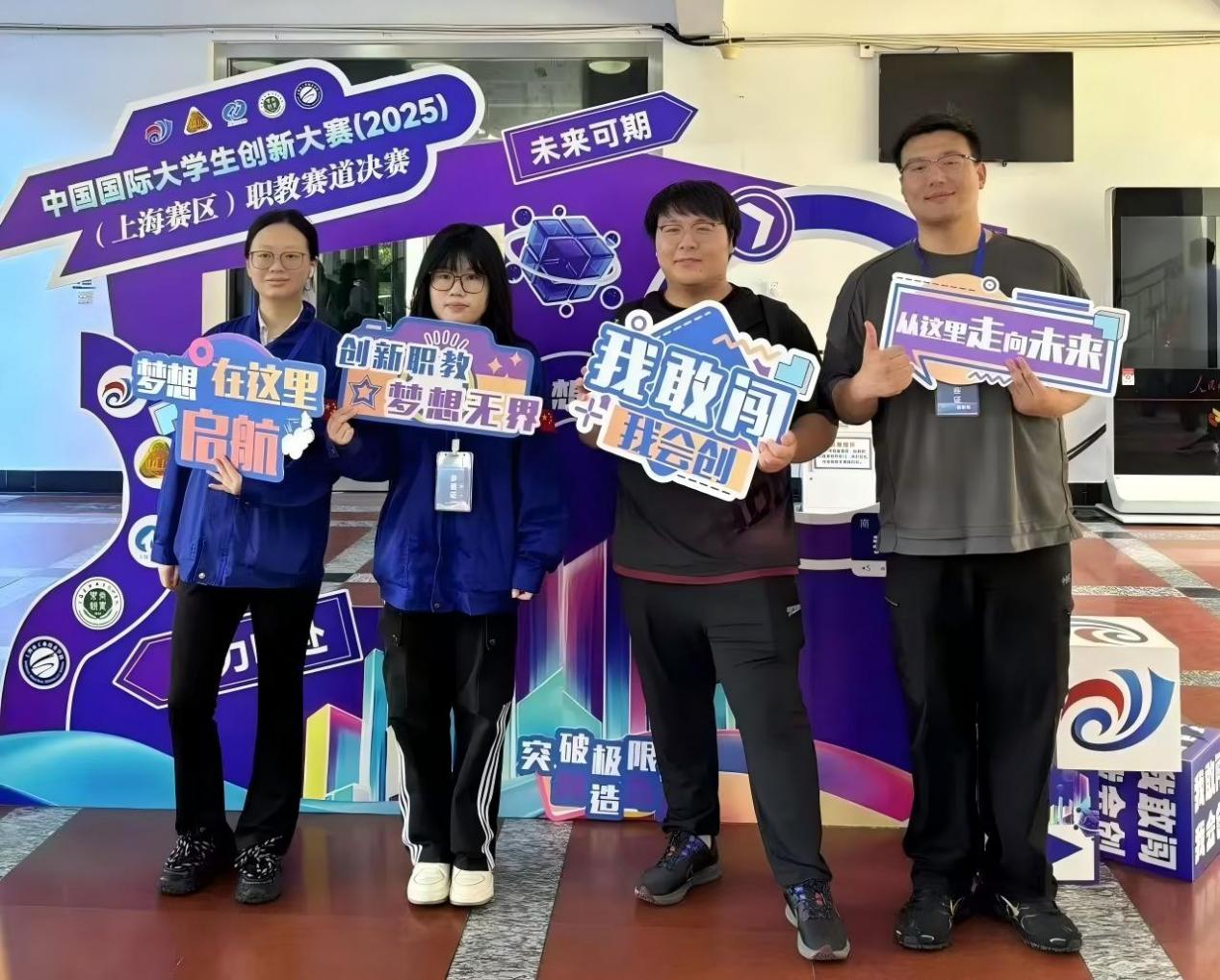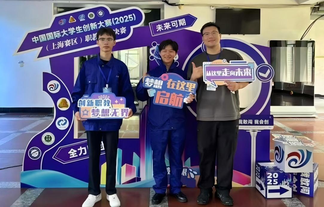 7月14日,在上海农林职业技术学院举办的2025中国国际大学生创新大赛上海赛区职教赛道选拔赛决赛上,我校信息学院传来捷报——郭传磊、刘芸菲同学分别带领团队打造的 “电净—新能源汽车电磁辐射抵消技术”和“轴动未来—新能源电机轴加工上下料机械臂” 两个项目,双双斩获市级金奖,为学校和学院赢得荣誉。